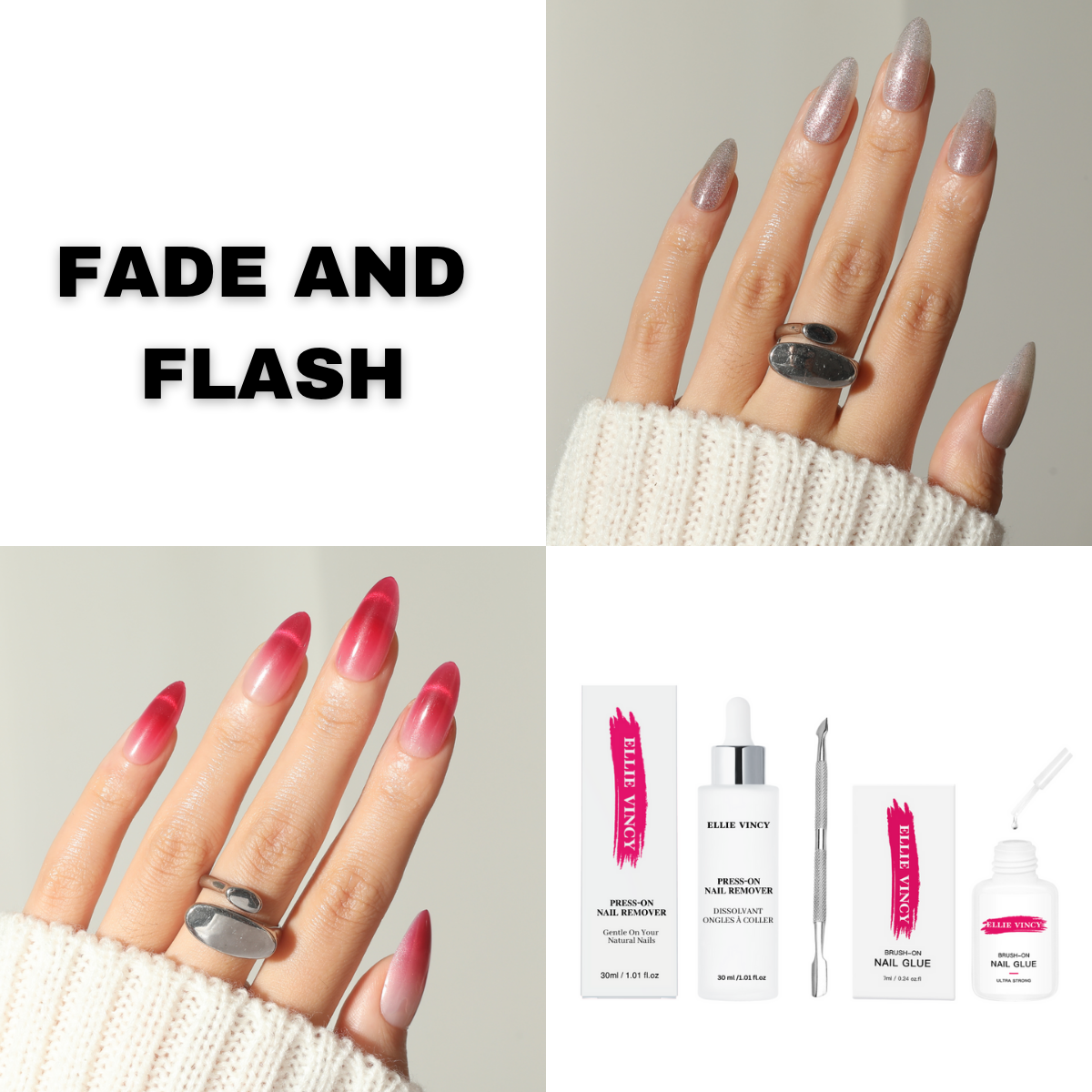 Complete with our signature nail glue, remover, and tool — Fade and Flash makes salon-quality nails quick, flawless, and damage-free.