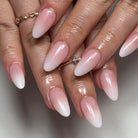 5. Press the Press-on Nail onto the sticky tad, starting from the cuticle and working towards the tip.