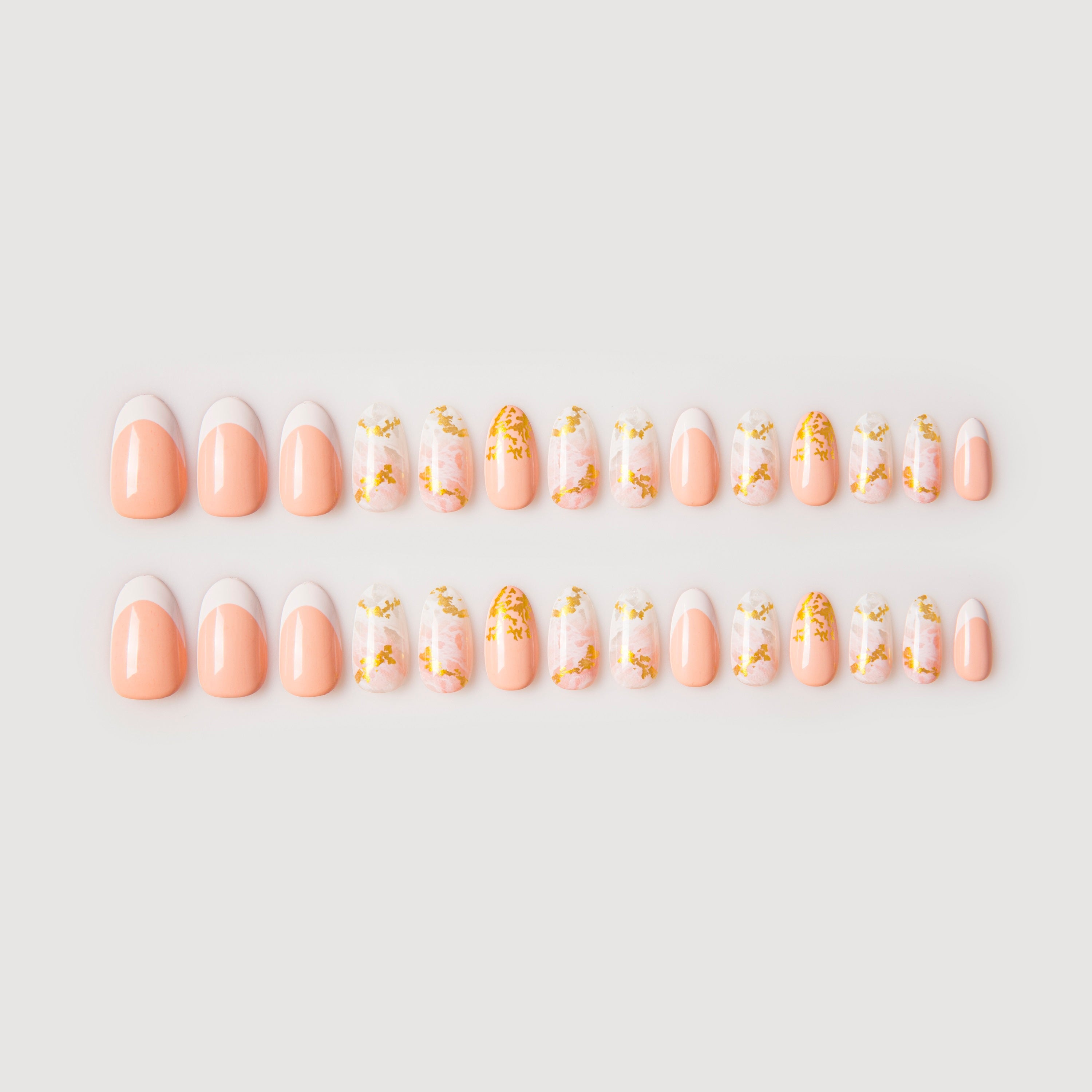 Das Tolle an unseren Nägeln ist, dass sie in vielen verschiedenen Größen erhältlich sind. Unsere Sets mit 24 Nägeln enthalten 12 verschiedene Größen und unsere Sets mit 30 Nägeln enthalten 15 verschiedene Größen. Bitte beachten Sie, dass Sie alle Nägel auch so formen können, dass sie perfekt passen. Außerdem kann die Breite unserer Nägel zwischen 6,3 mm und 14,02 mm variieren.