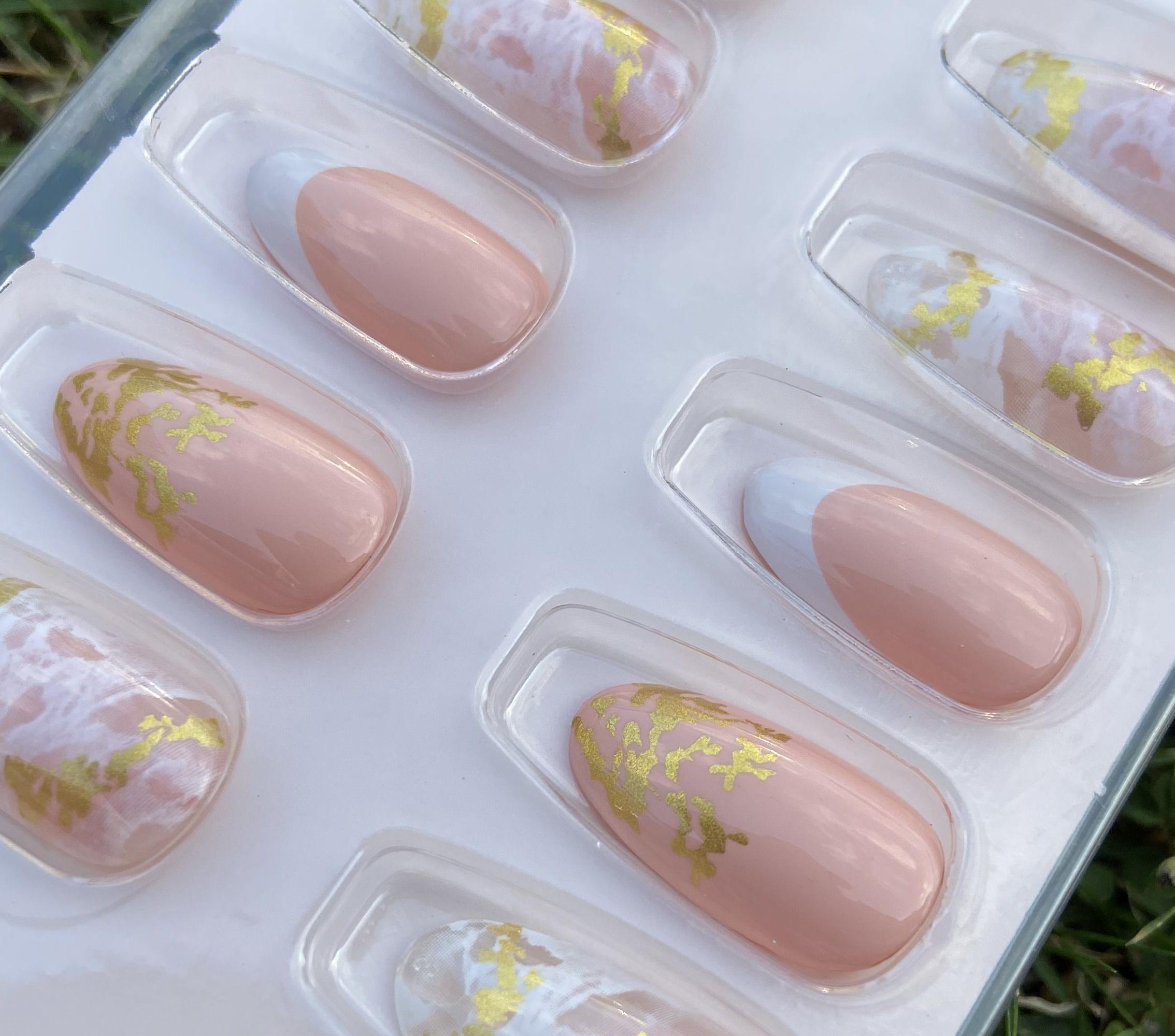 - Anbringen des Press-On-Nagels: Drücke den Press-On-Nagel von der Nagelhaut in Richtung Spitze auf das Klebepad, damit er sicher sitzt. 💖👑
