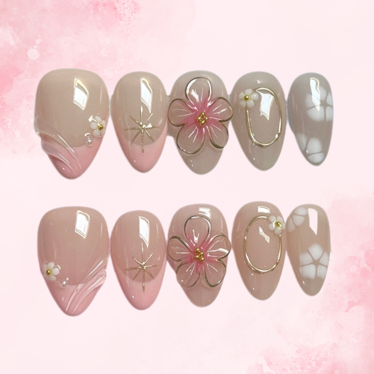 Rosy Halo Almond Luxury Glue on Press on Nails