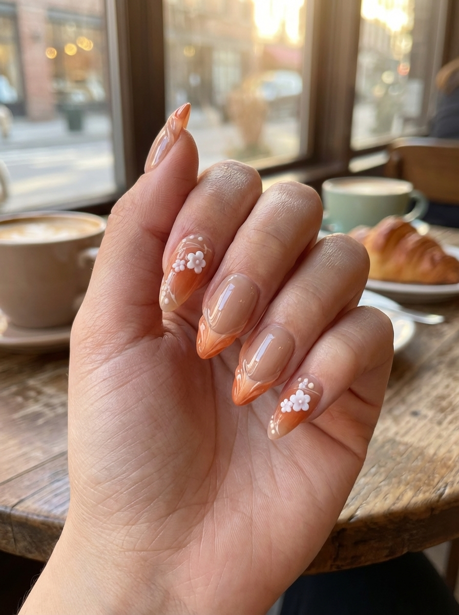 Ongles à coller de luxe Amber Petal Almond