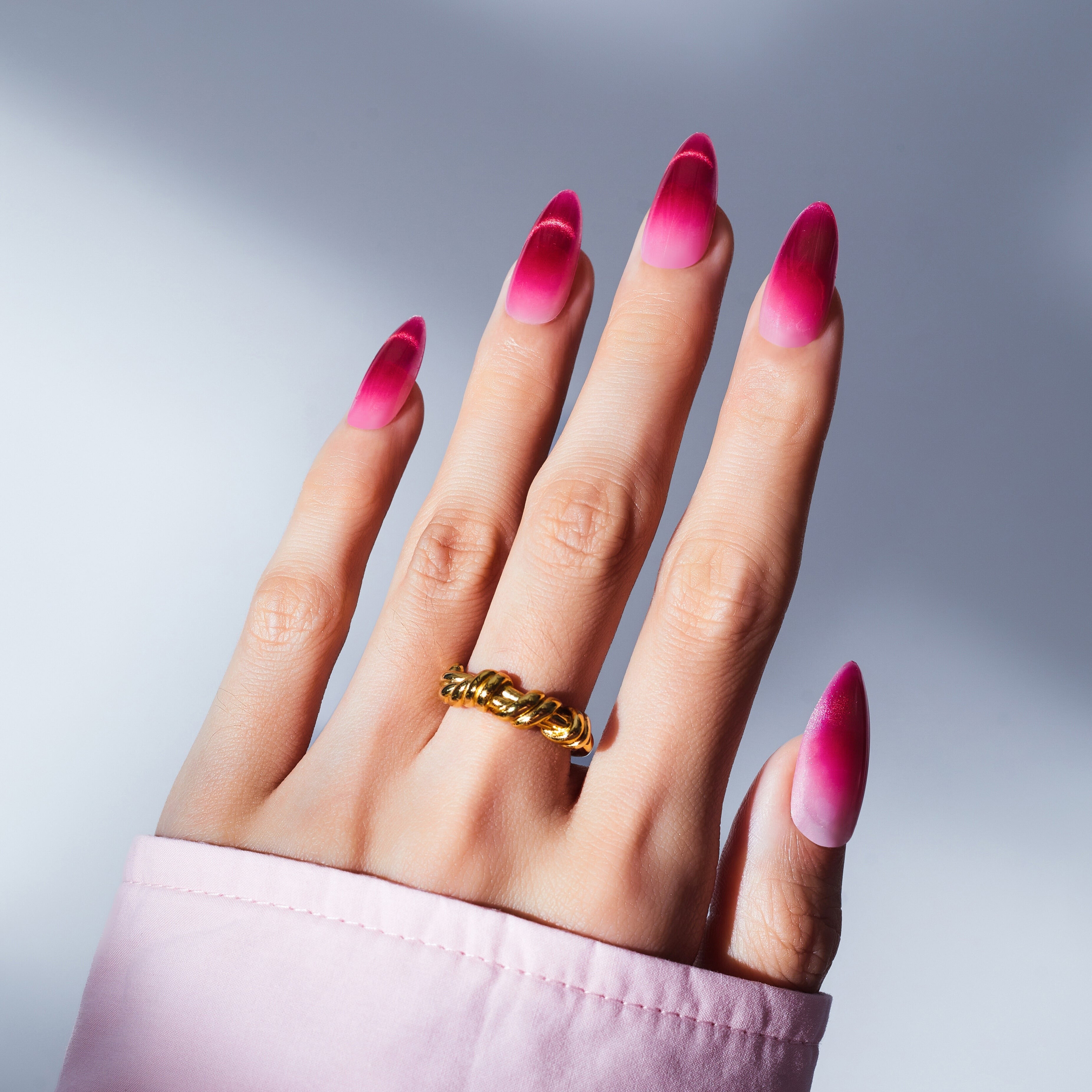 Augmentez le drame avec ces superbes ongles roses ombrés audacieux ! 💖🔥 D'une teinte riche et profonde à un dégradé doux et romantique, ces ongles en amande apportent une ambiance féroce mais féminine à votre look. Libérez votre confiance dans chaque geste ! 💅✨