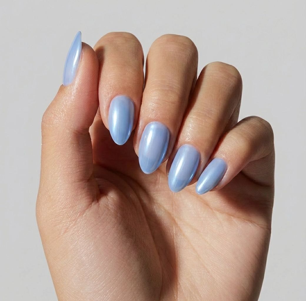 Our Serenity Blue Almond Nails = fresh, calming chic in every wear ๐. A dreamy baby blue hue on a sleek almond shape, these nails bring modern refinement and a cool, pastel vibe to any look. Perfect for every occasion! ๐ ๐ผ