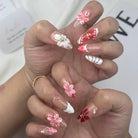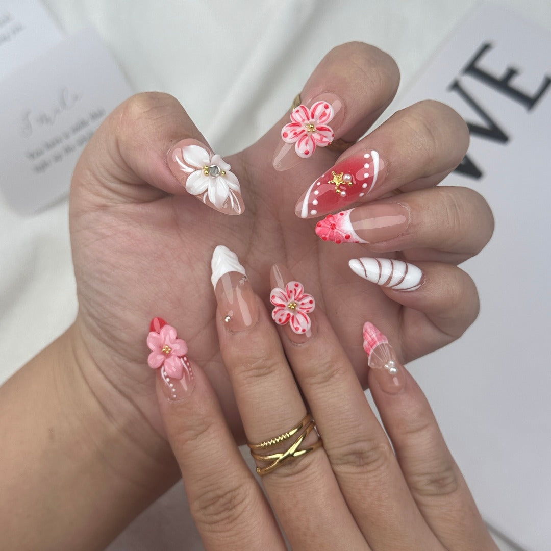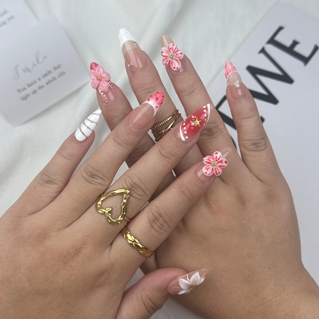 Each set has 10 pcs of Press-on nails and a Free application kit(Nail glue, Sticky tab, Nail file, and cuticle pusher). Within minutes- you'll have nails fit for a Queen!