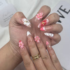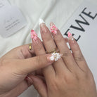 - Press the Press-on Nail onto the sticky tad, starting from the cuticle and working towards the tip.
